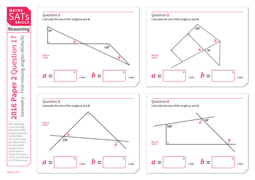 Finding The Value Of A Missing Angle Ks2 Maths Sats Reasoning Practice Worksheet Teaching Resources